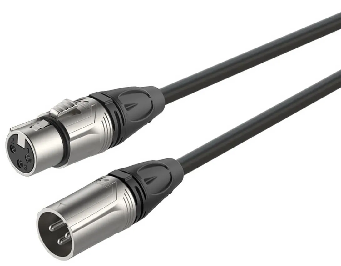 Микрофонный кабель Roxtone DMXX200/3. Высококачественный кабель с XLR(3P) разъёмами типа «папа» и «мама» (RX3F-NT и RX3M-NT). Проводники: 2х0,22 кв. мм.