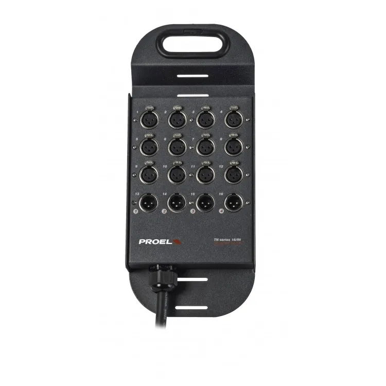 Мультикор PROEL TN1204 с раздаточной сценической коробкой. Длина: 20 метров.12 входов XLR, 4 выхода XLR. Металлическая коробка покрыта высокоустойчивой эпоксидной краской. В мультикоре использован высококачественный кабель серии 'CMN'.Разъемы: