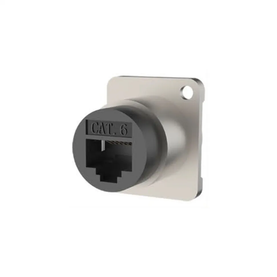 Панельный разъём RJ45 (CAT6) с заземлением от ROXTONE. Произведён в Китае компанией ROXTONE — крупным производителем сценического оборудования и коммутационной продукции.