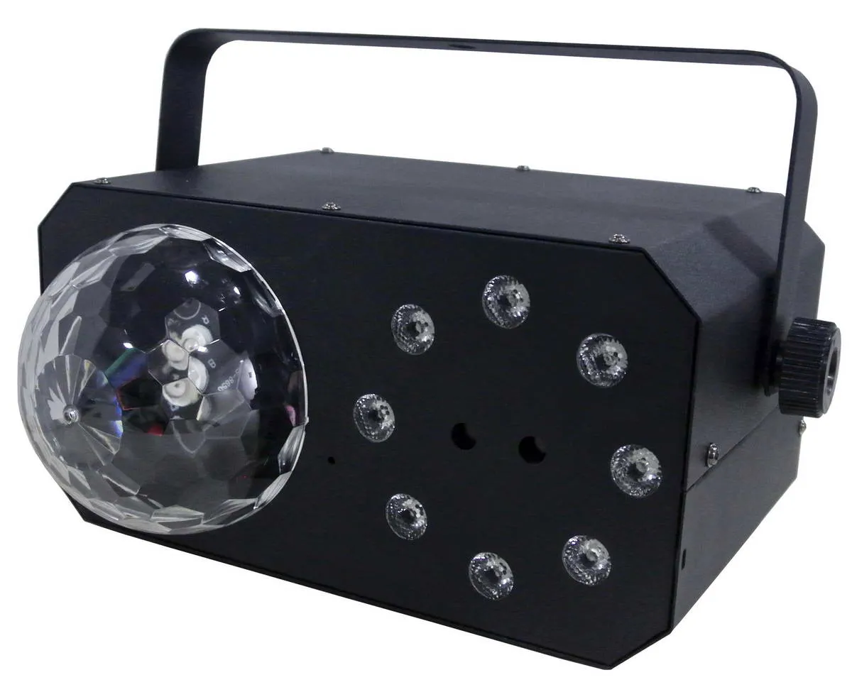 Источник света: 8x1 Вт RGBA WASH LED; 4x1 Вт RGBA LED (эффект дэрби); Красный и зелёный лазер
