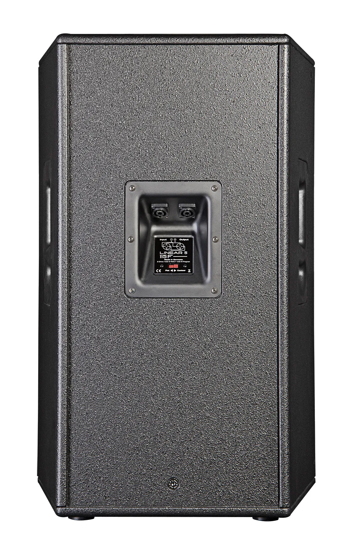 Мощный динамик заключён в прочный корпус из МДФ чёрного цвета. Имеется разъём Speakon для подключения к усилителю мощности.