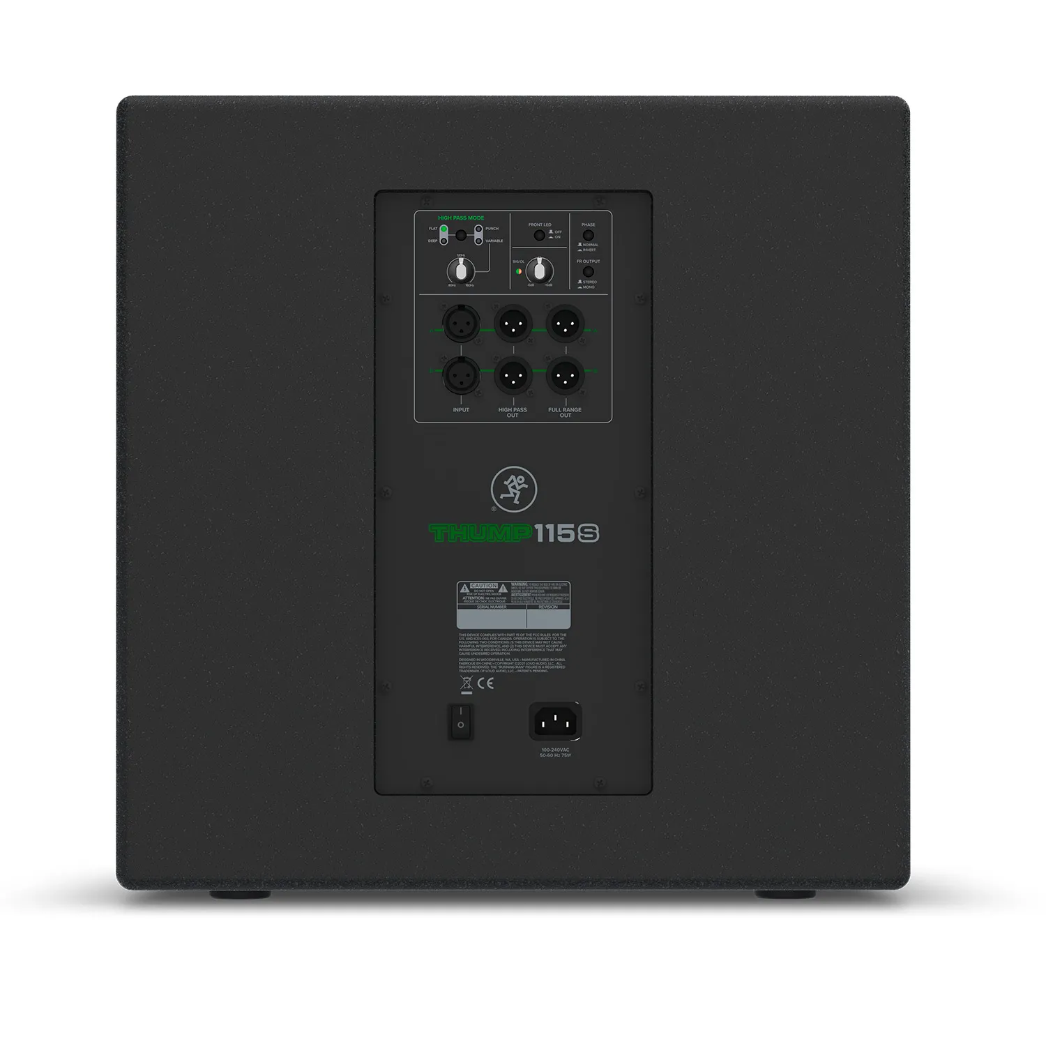 Сабвуфер оснащается усилителем класса D мощностью 1400 Вт, 15” НЧ динамиком и предлагает четыре режима звучания, включая Flat, Deep, Punch и Variable с регулятором частот от 80 Гц до 160 Гц. Кроме этого, имеется переключатель инвертирования полярности, регулятор уровня (от -6 до +6 dBu), переключатель стерео/моно и кнопка включения/выключения светодиода.Технические характеристики Mackie Thump115S