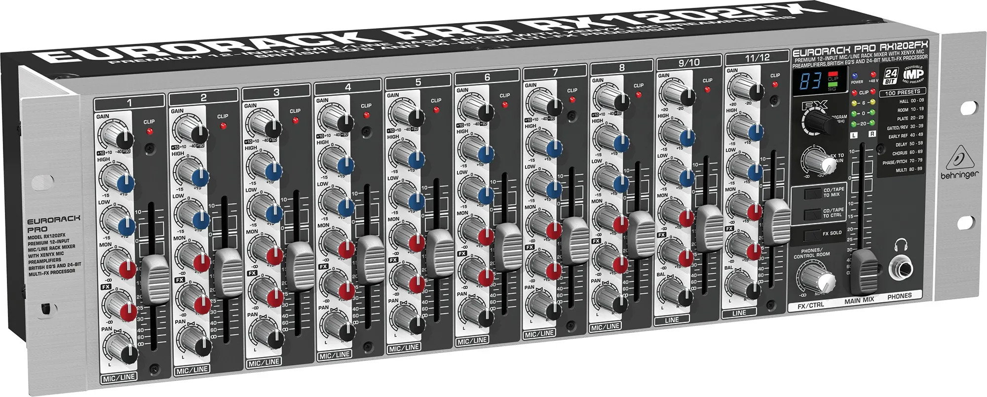 Сверхнизкошумящий 12-канальный рэковый микшер с высококачественными микрофонными предусилителями и 24-битным мультиэффектпроцессором.Особенности: