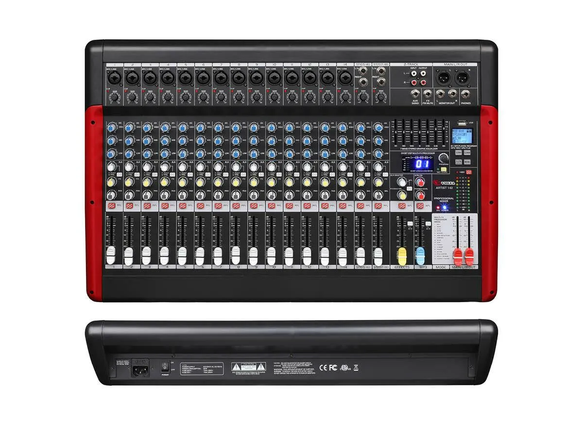 Микшерный пульт Volta ARTIST 142 — это устройство для звукоусиления, которое позволяет сводить сигналы от микрофонов, инструментов и плееров. Имеет 14 монофонических входов и 2 стереопары. Каждый канал оснащён эквалайзером и другими функциями.