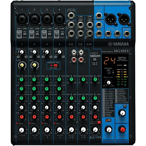 Не смотря на то, что Yamaha довольно поздно стала выпускать аудио-смесители компактного размера, их первая линейка MG мгновенно стала популярной и востребованной на музыкальном рынке. Лучшие инженеры и глубокие познания в акустике, основанные на многолетнем опыте позволили создать MG10XU USB – уникальную, компактную, мобильную аудио-систему для микшировки. Это новый уровень в звучании, качестве создаваемых эффектов, а так же удобстве их использования. Данную модель можно подключить к ПК в студии, что позволит качественно расширить возможности. Четыре отдельных канала и трехполосный эквалайзер позволят сопоставить и настроить голоса с инструментами. А классический цифровой мультипроцессор SPX от Yamaha, поднимет на новый уровень замиксовку различных эффектов.Характеристики и возможности