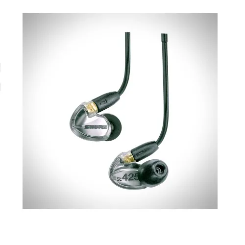 Shure SE425 - звукоизолирующие миниатюрные наушники высокого разрешения, они обладают сбалансированными двухкомпонентными микродинамиками, со встроенным кросовером, съемным кабелем и позолоченными разъемами.