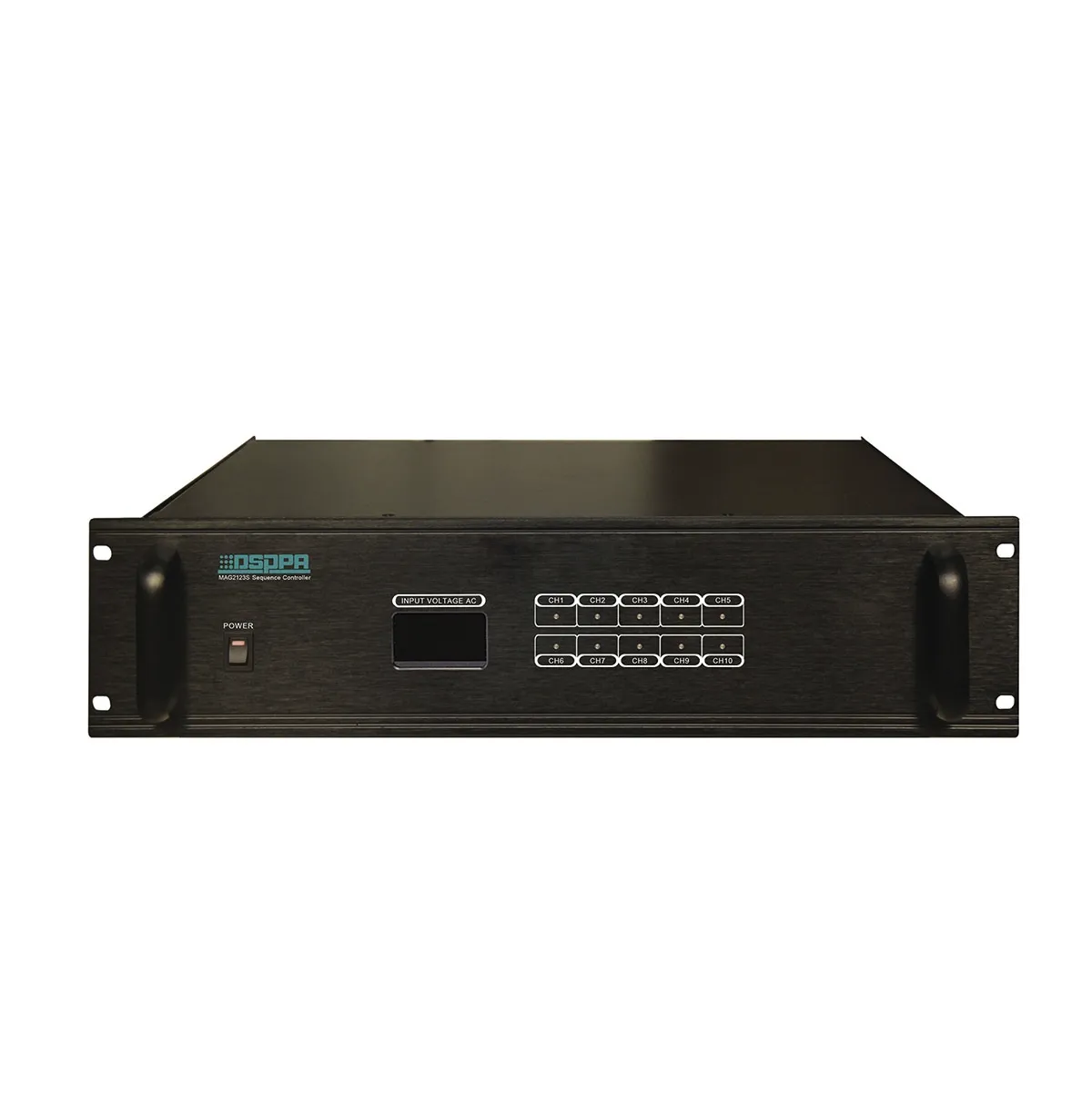Контроллер DSPPA MAG-2123S управляет питанием на 10 каналов. Есть ручное и автоматическое управление с таймером. Мощность до 7,5 кВА. Есть индикатор напряжения.