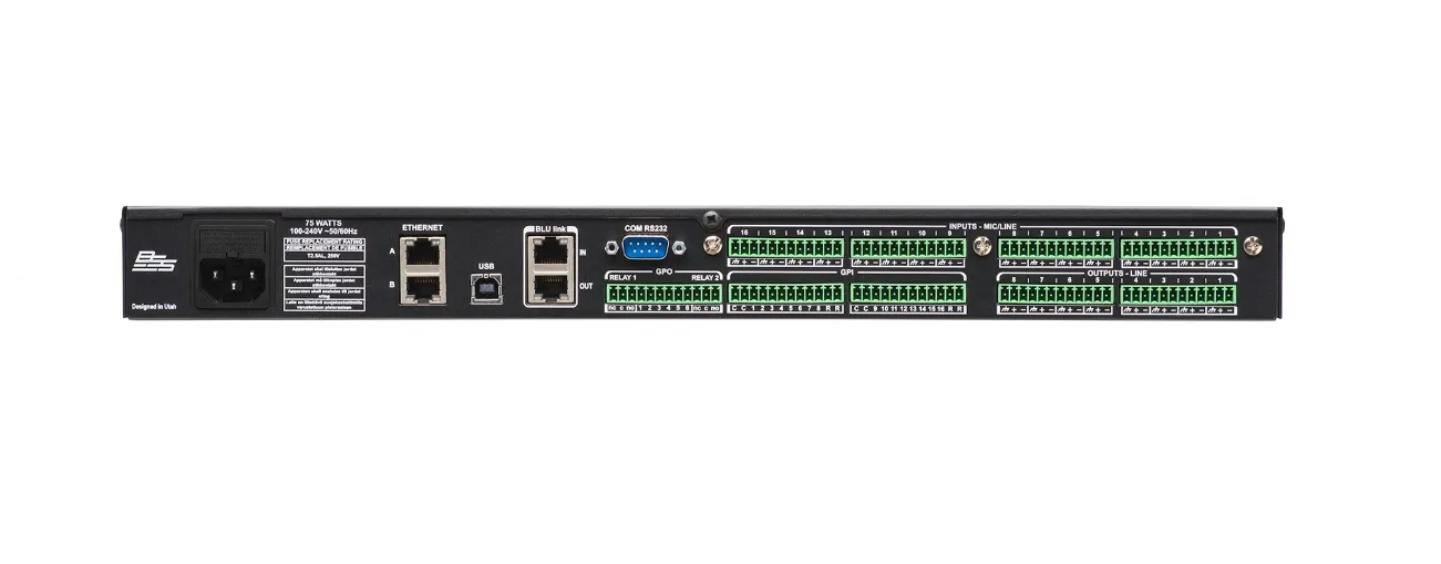 BSS DCP-555 — это конференционный процессор для залов. Он позволяет настраивать необходимое количество комнат для собраний через веб-интерфейс. Поддерживает до четырёх комнат аудиоконференций, имеет встроенные шаблоны для автомикширования и разъёмы BLU-Link, USB и AES 67 для подключения различных устройств.