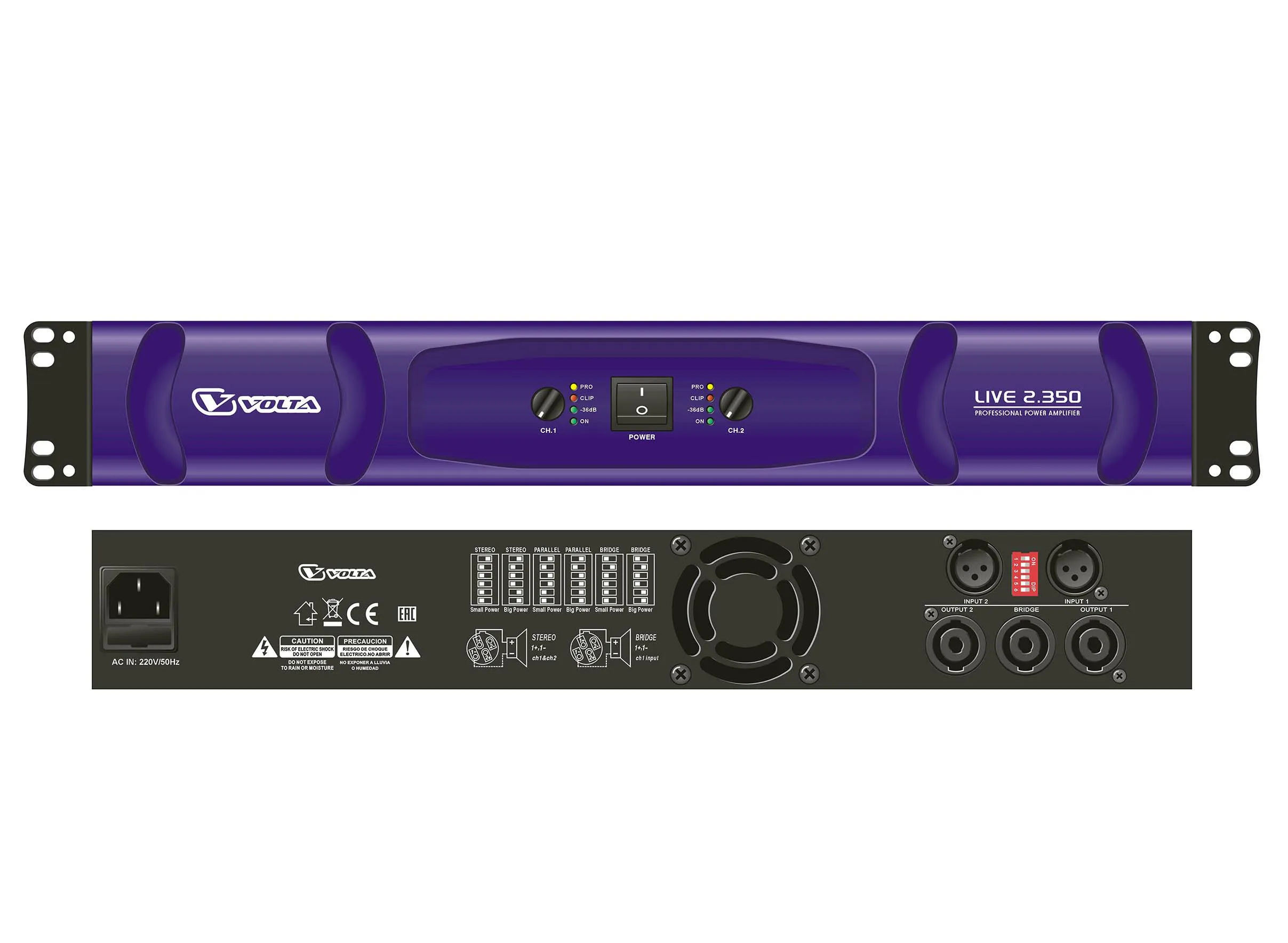Volta LIVE 2.350 — профессиональный усилитель мощности для стационарных и мобильных звуковых систем. Надёжен и лёгок, удобен для инсталляторов и проката.