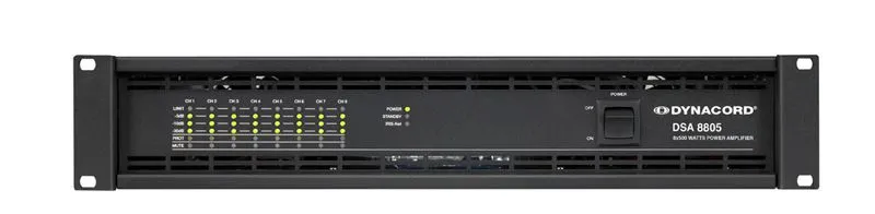 Dynacord DSA 8805 — это четырёхканальный усилитель с высокой мощностью и надёжностью. Подходит для систем с акустическими кабинетами DYNACORD. Усилители серии DSA имеют разные режимы работы каналов и защиту от перегрева, перегрузок и короткого замыкания.
