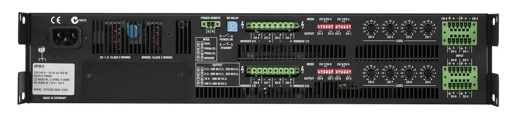 Функция «мягкого» старта и ограничение тока при включении защищают устройство. Опциональный модуль RCM-810 позволяет дистанционно управлять усилителем через ПО IRIS-Net.
